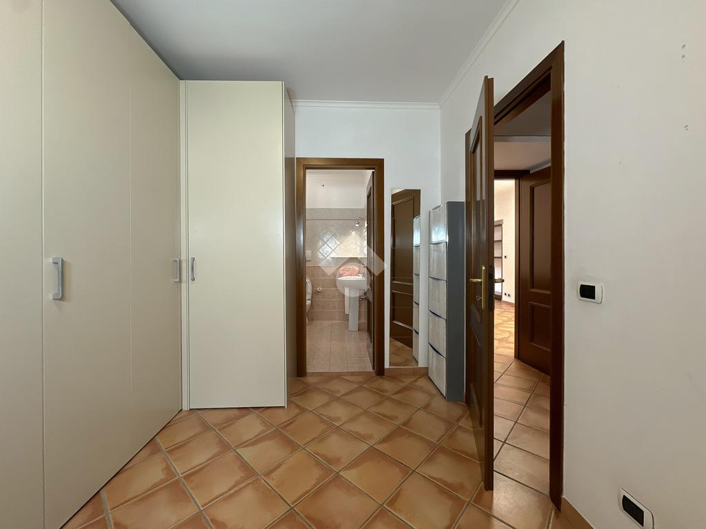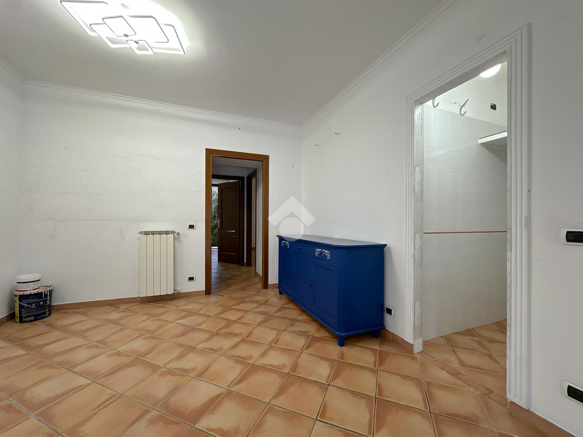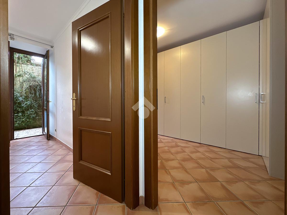 L’interno dell’appartamento è composto da un luminoso salone con angolo cottura e un pratico ripostiglio. La zona notte offre una spaziosa camera matrimoniale con uscita sul giardino pavimentato retrostante, una cameretta anch’essa con accesso al giardino e un bagno privato con vasca idromassaggio. Completano la zona notte un secondo bagno con box doccia. Entrambi i servizi sono dotati di un moderno sistema di aspirazione.