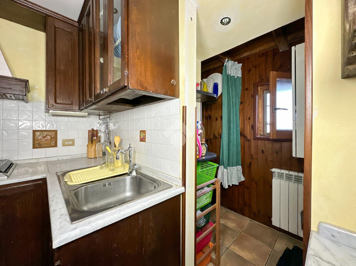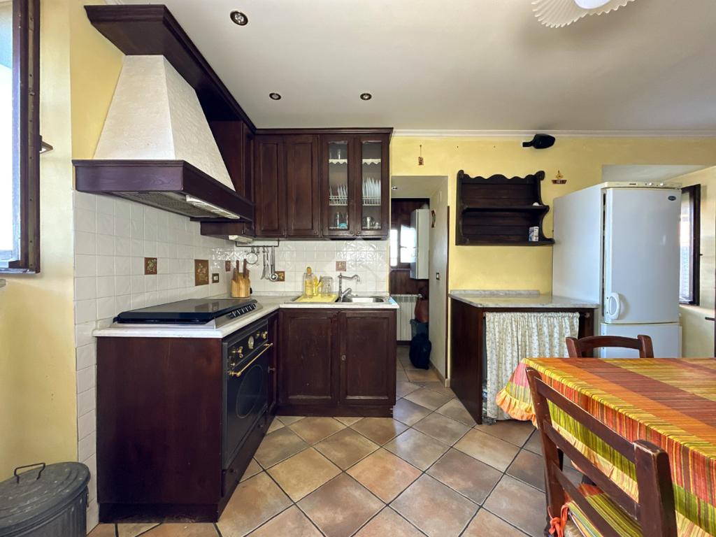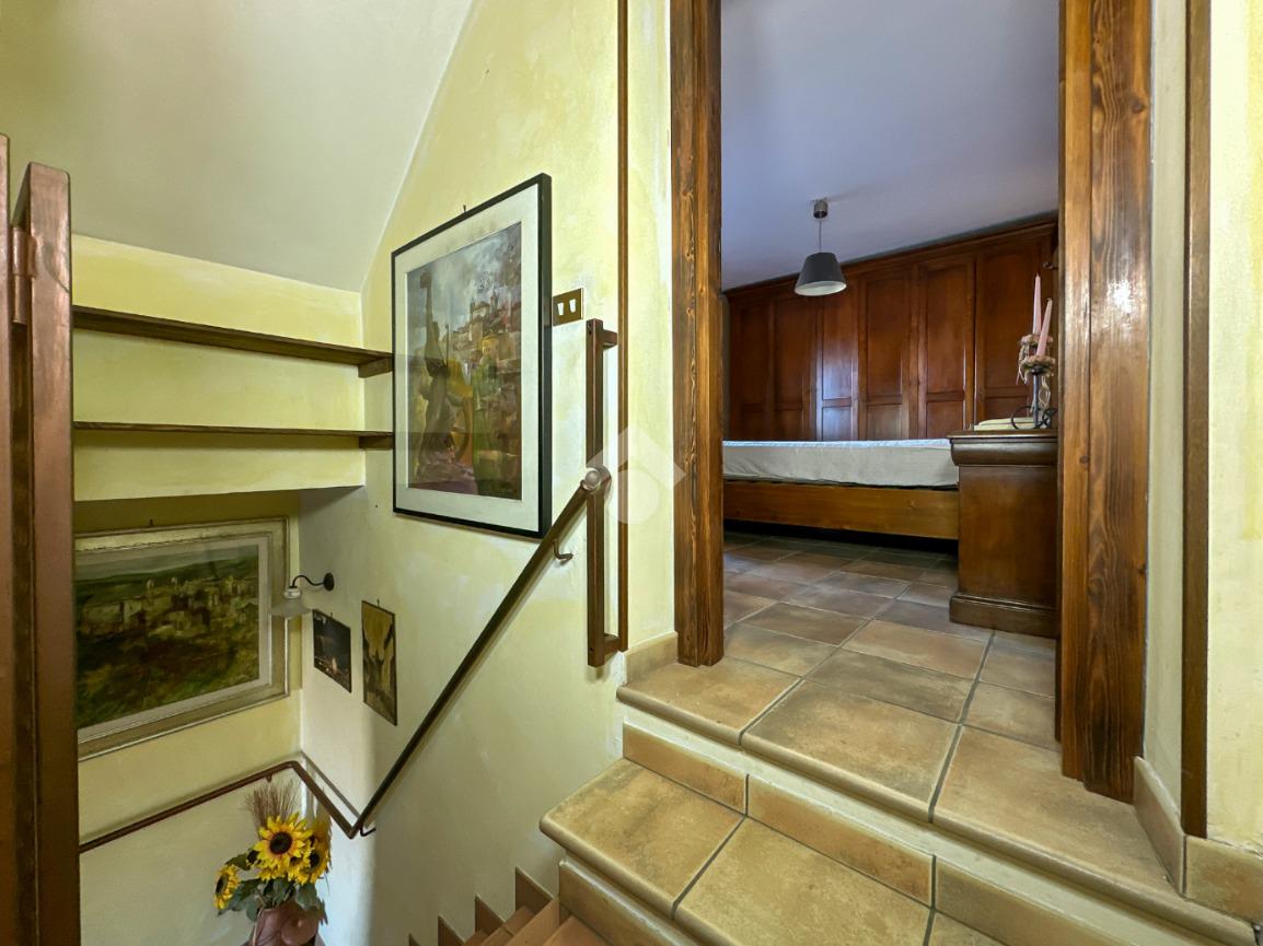 Una scala interna conduce al piano superiore, dove si sviluppa la zona notte con una camera matrimoniale, una cameretta e un bagno finestrato dotato di box doccia.