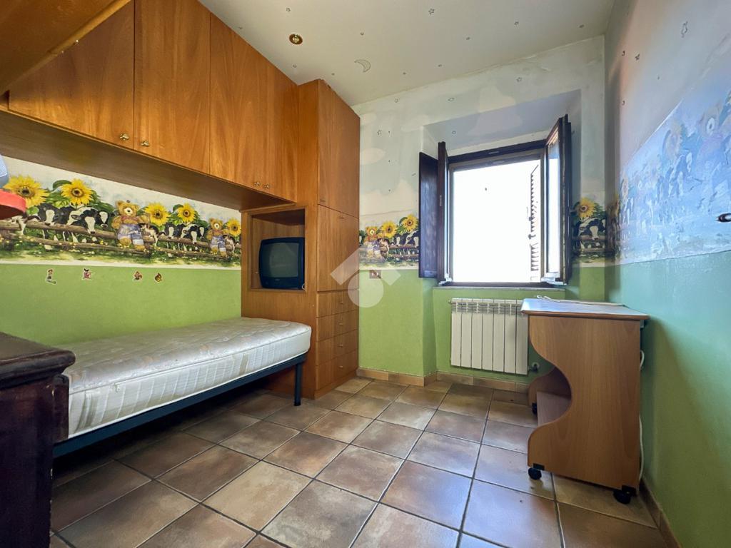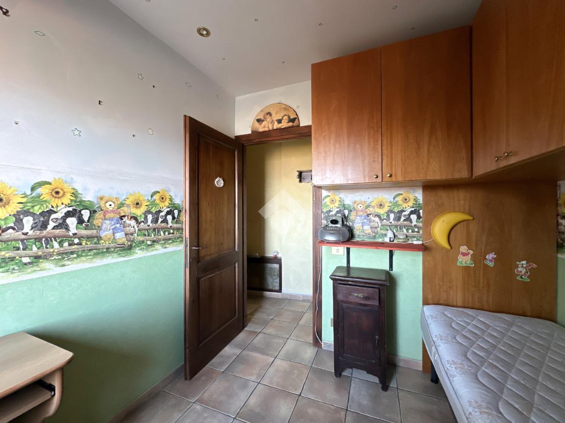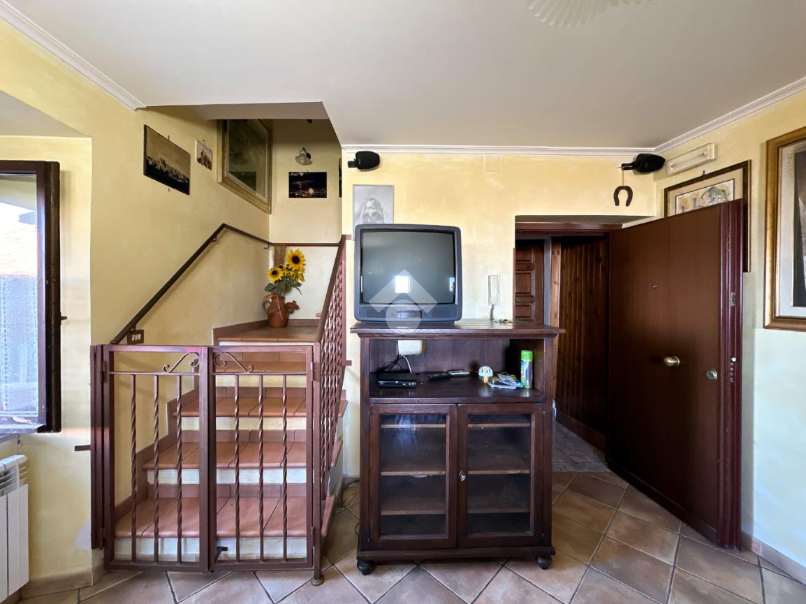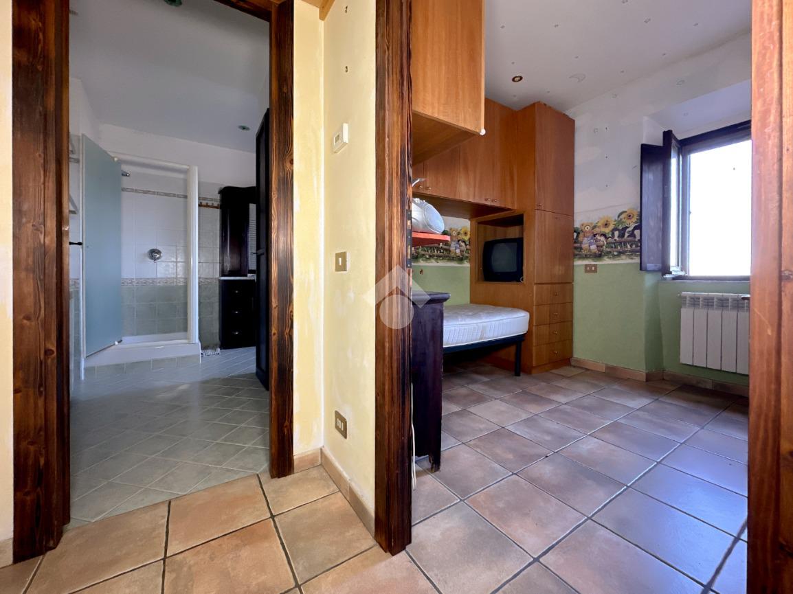 Una scala interna conduce al piano superiore, dove si sviluppa la zona notte con una camera matrimoniale, una cameretta e un bagno finestrato dotato di box doccia.