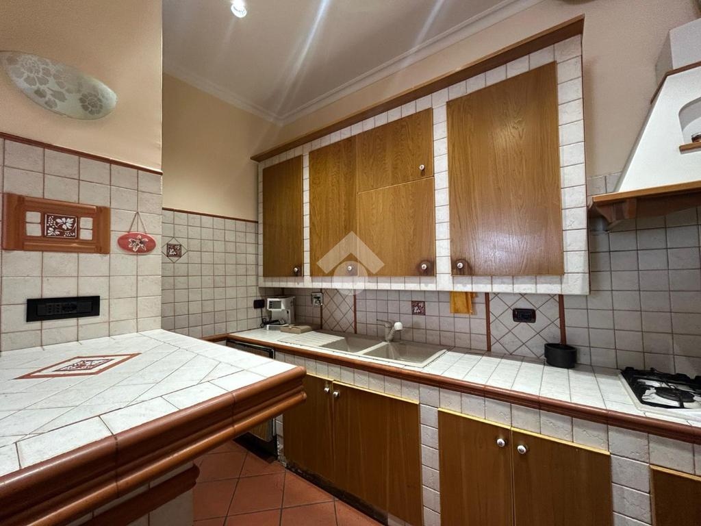La soluzione si apre su una zona giorno accogliente, composta da un salone impreziosito da un camino e da un angolo cottura a vista, che dona all’ambiente un’atmosfera calda e conviviale.