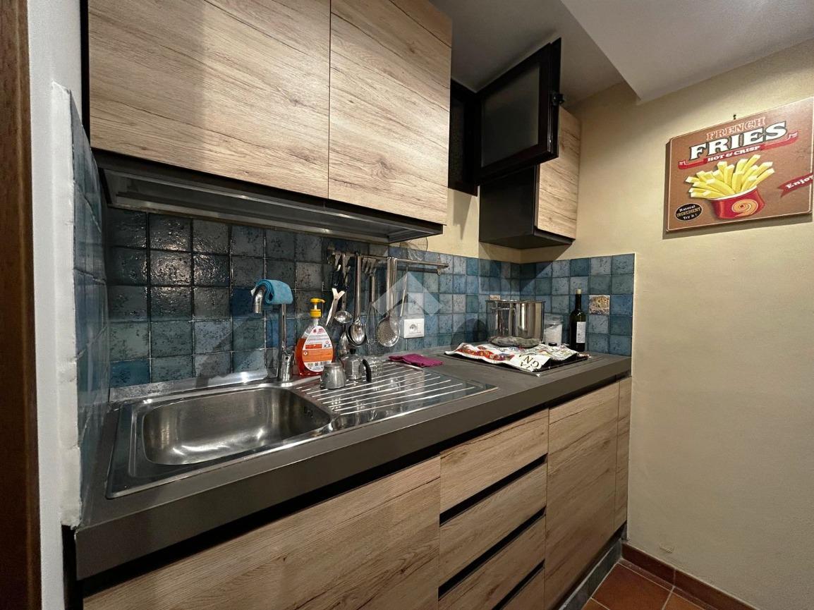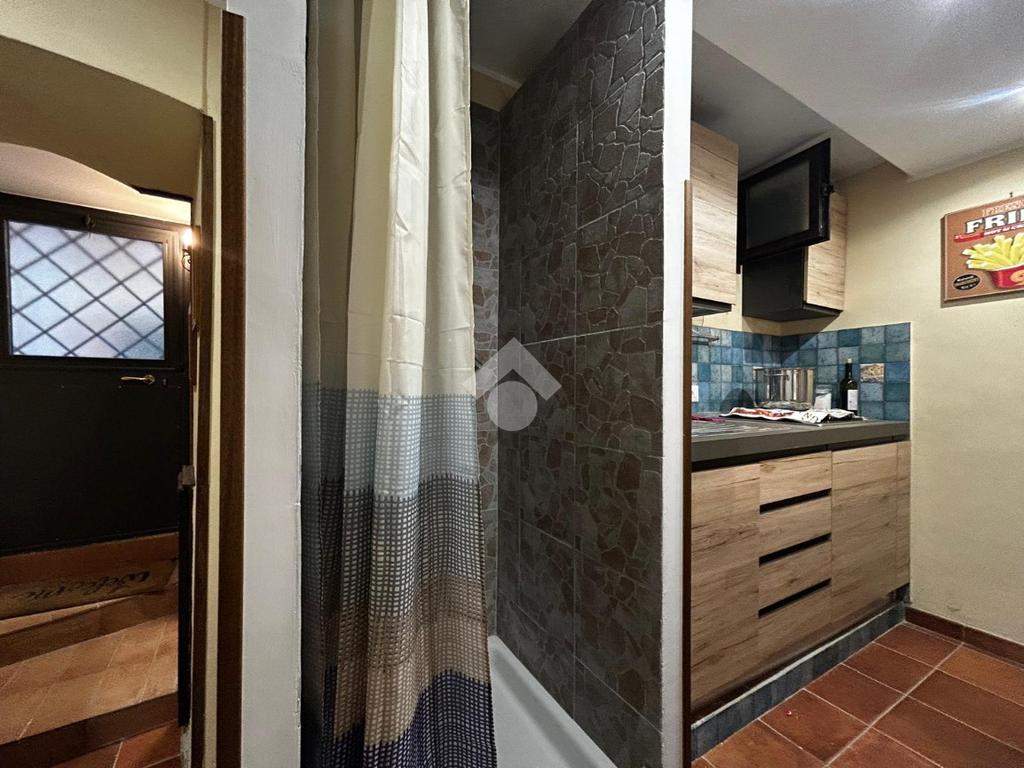La soluzione, posta al piano terra, si sviluppa in un unico ambiente di circa 20 mq, arricchito da angolo cottura e bagno di servizio.